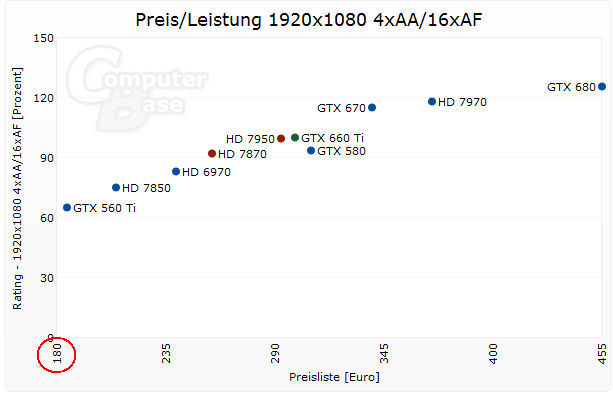 einzigen Blick auf das alte Preisleistungsverhältnis (RIP 18.07.2012) welche Karte die meisten FPS/€ liefert. Blöderweise treiben sich in den Top3 seit Monaten ausschließlich diese nervigen Mittelklasse-Karten von AMD rum...