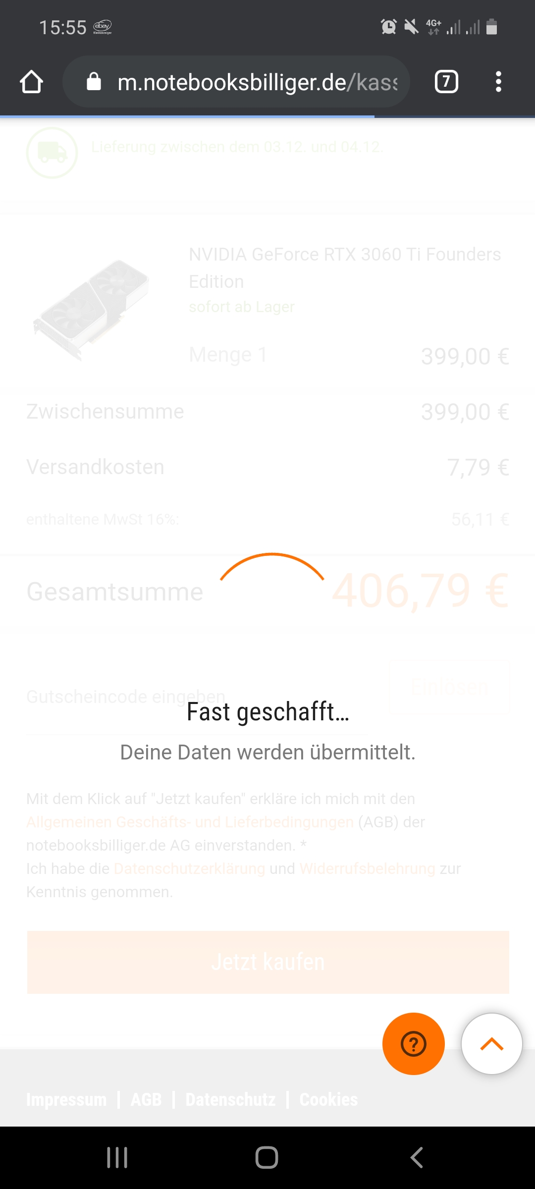 399€ ? wo gibts denn sowas?Rodman schrieb:Hab für meine GigaByte GeForce RTX 3060 Ti EAGLE für 399€ auch gerade die AB bekommen.