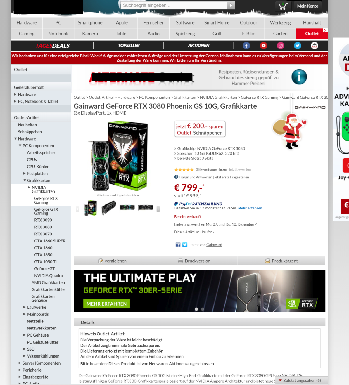 Es gab ganz viele 3080 Retouren, weil dann alle meinten die 6800XT wäre ja soviel günstiger und besser verfügbar, und die kommen so langsam alle wieder in den Outlet.