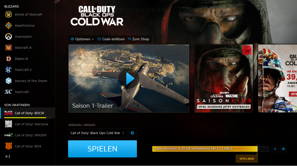 Bei Battle.net gibt es verschiedene COD Versionen zum Download. Single Player Only, Multiplayer Only, SP + MP und dann gab es noch eine Option bzgl. hochauflösenden Texturen. Ich konnte das vor dem Beginn des Download auswählen, habe den SP only genommen und das waren ca. 60 GB.
