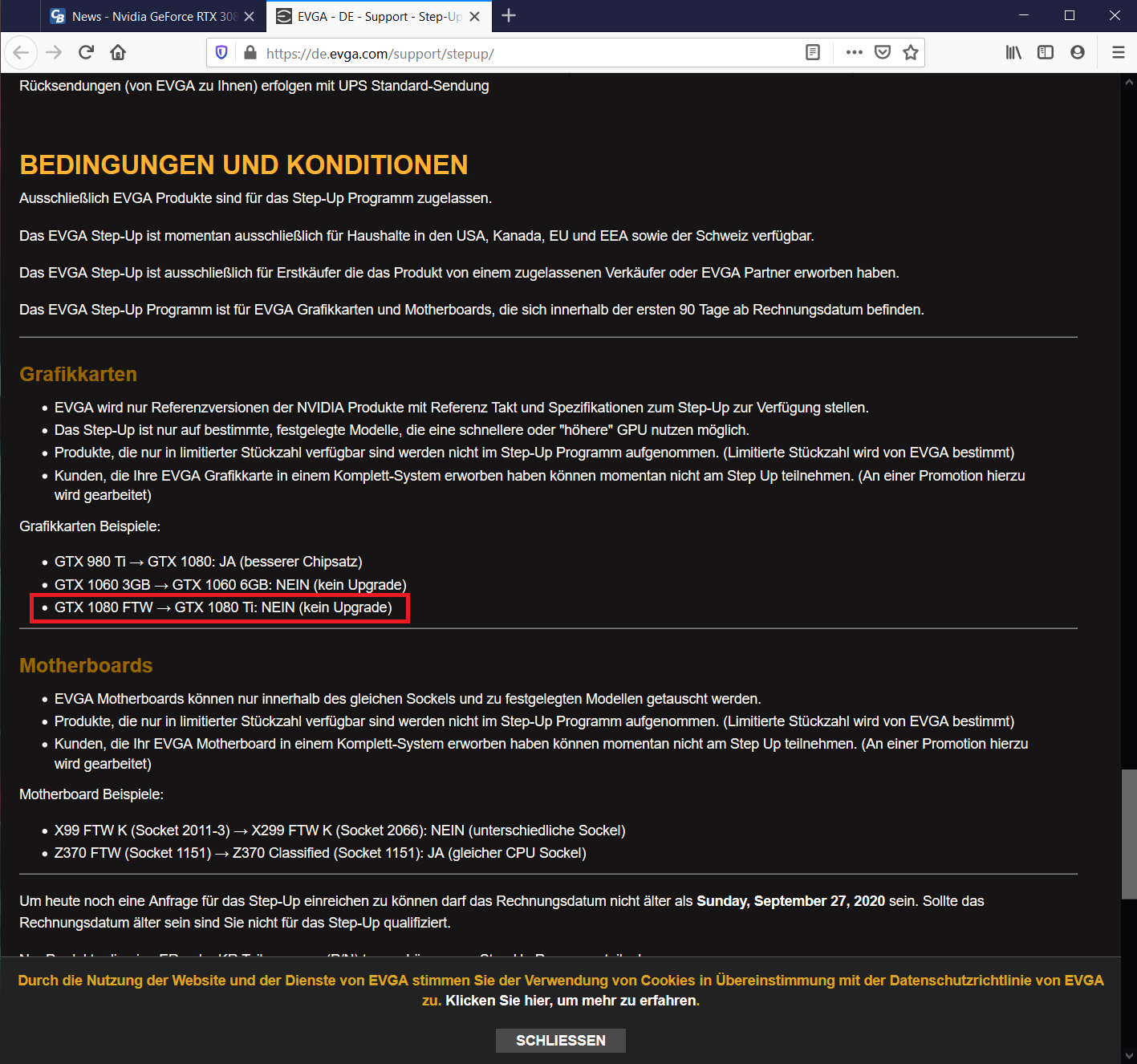 Siehe Foto im Anhang, das steht bei den Beispielen ganz unten. 1060 3GB auf 6GB geht demnach auch nicht.oldestvisitor schrieb:Wie kommst du darauf auf der step Up Seite steht als Beispiel 1060 3 GB auf 1060 6gb als valides Upgrade