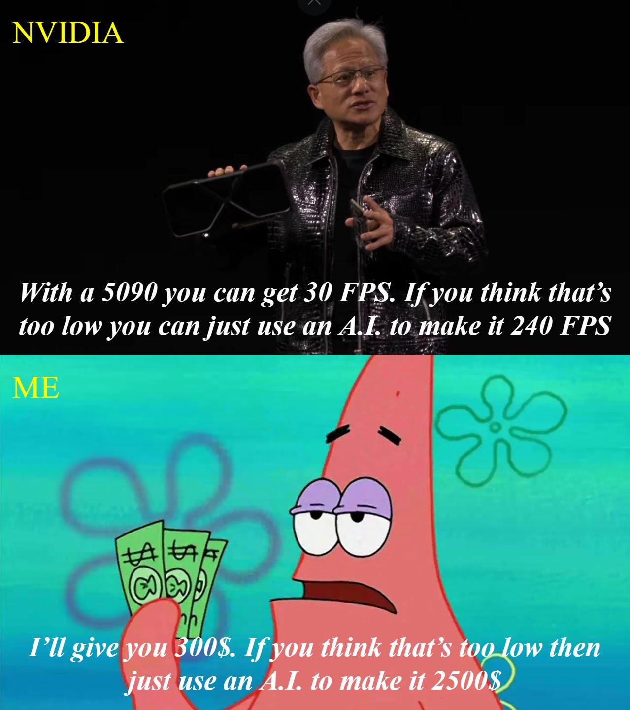 Es wird jetz vorne und hinten von nVidia gespart(Kühler, Sensoren, Material) aber viel teurer unter dem DLSS Deckmantel verhökert.Snoopy69 schrieb:..