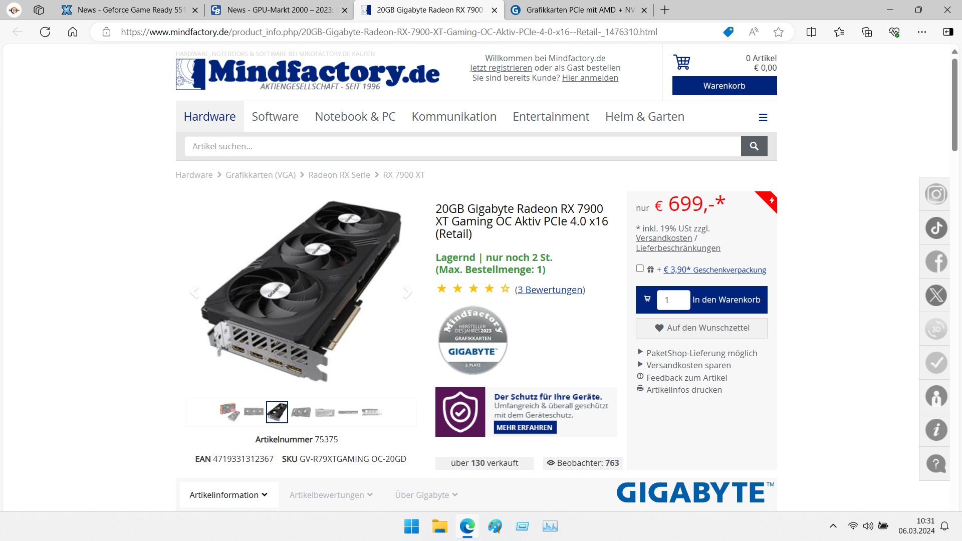 SweetOhm schrieb:in dieser Klasse gibt es auch Konkurrenz in Form einer 7900 XT (mit 20 GB) für 699 €.