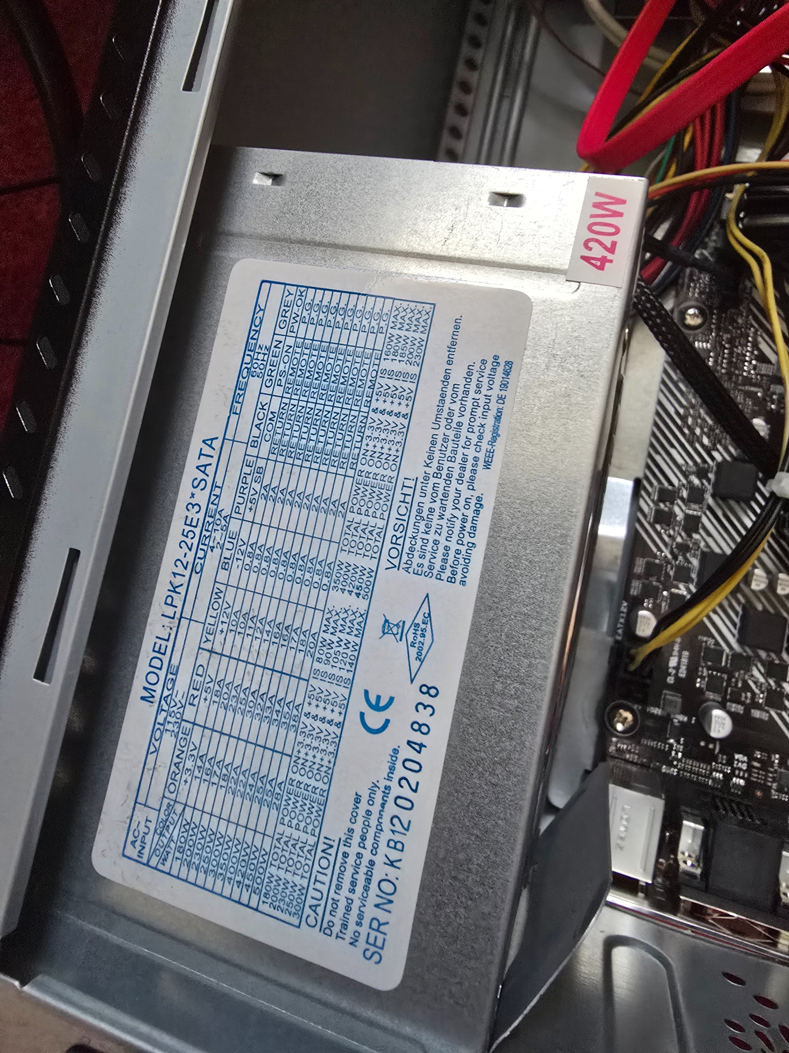 Das will ein 420W Netzteil sein, hat aber nur weniger als die Hälfte davon auf der +12V Schiene, worüber auch die Grafikkarte versorgt wird.