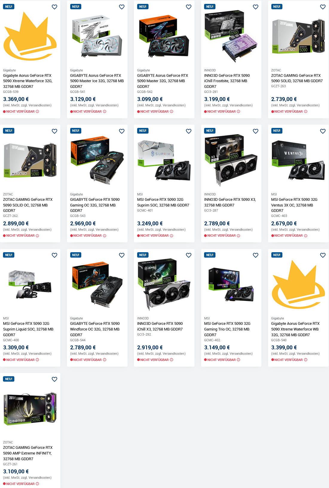Hier ein Screenshot mit allen Preisen der 5090 dort.
