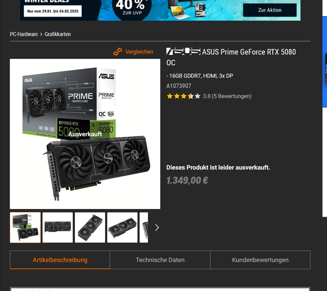 Vermutlich weder die 5080 FE noch die 5090 FE.Player49 schrieb:Gab es überhaupt 5090 FEs in Deutschland zu kaufen? Ich sehe erstaunlich wenige bei Kleinanzeigen.