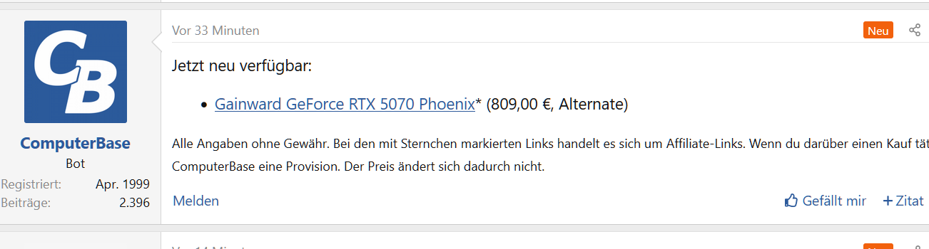 Ich habe hier mal meine Chrome Suchaufträge für die 5090 exportiert (für 5070/5080 einfach Keyword ändern)...wenn sie jemand nutzen möchte. Hat ein wenig gedauert bis ich die richtige Keyword und Intervall Kombination raus hatte: