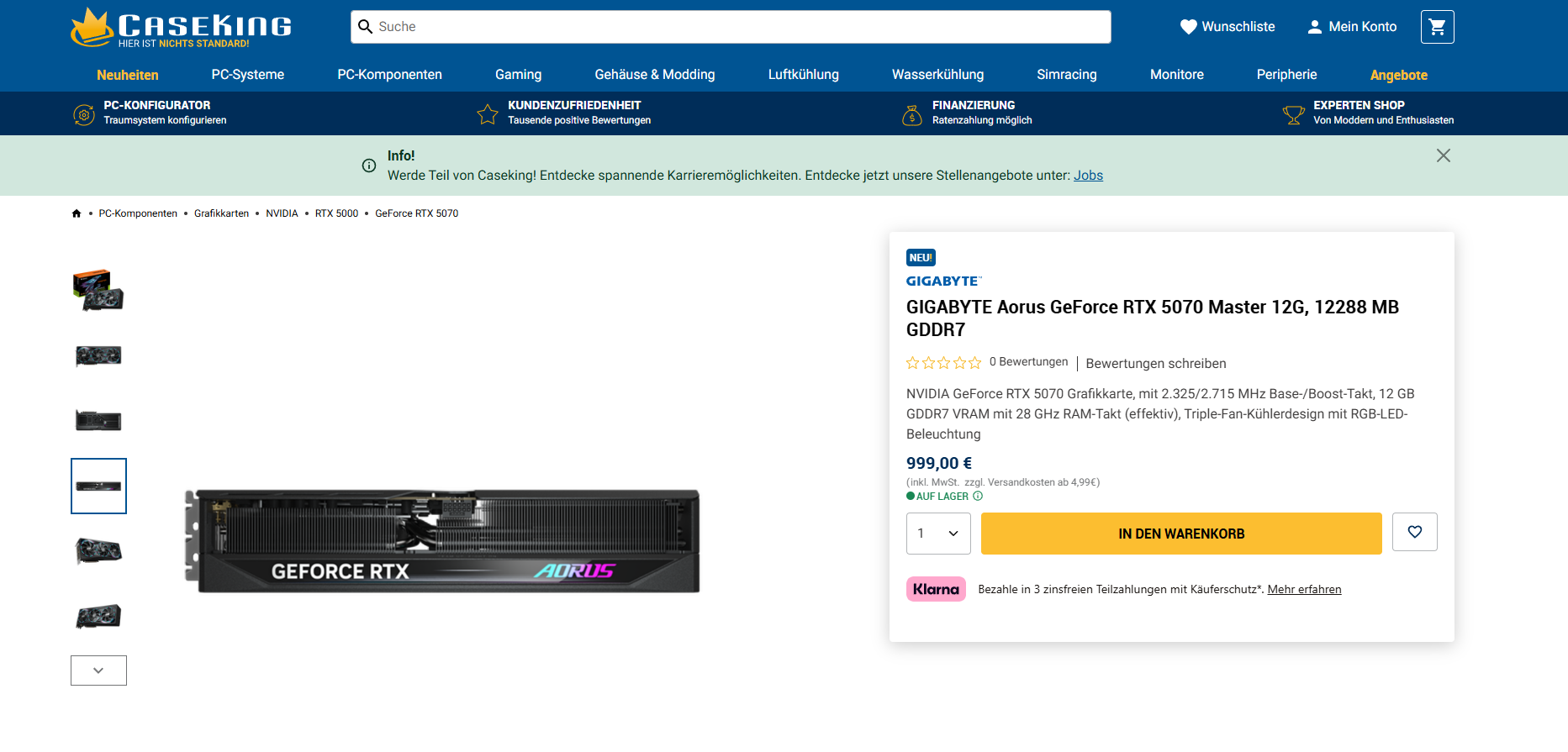 - GIGABYTE Aorus GeForce RTX 5070 Master 12G* (985,32 €, Caseking)