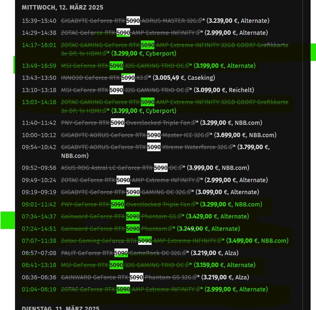 Das muss sich in jedem Fall in paar Wochen preislich einpendeln.Jetzt kommen sogar paar 5090er am Tag.