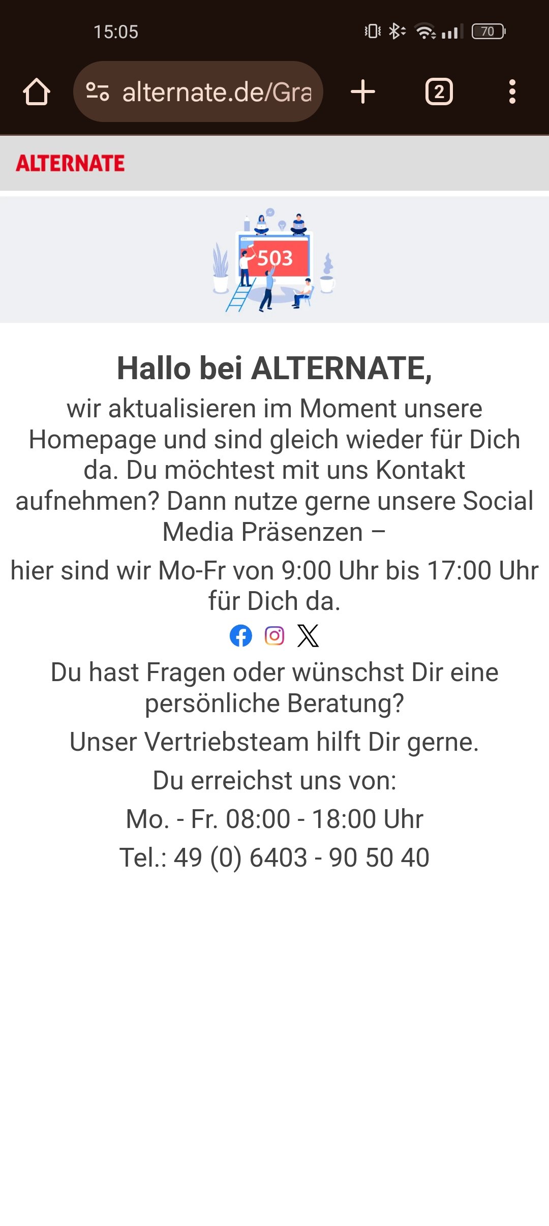 Bevor die Seite abgekackt ist, habe ich auch gesehen, dass die Auf Lager war, das wars dann aber auchMuhmaster schrieb:habe bei alternate ne bestellung für ne GIGABYTE GeForce RTX 5080 AERO OC SFF 16G, durchbekommen mal sehen was das wird