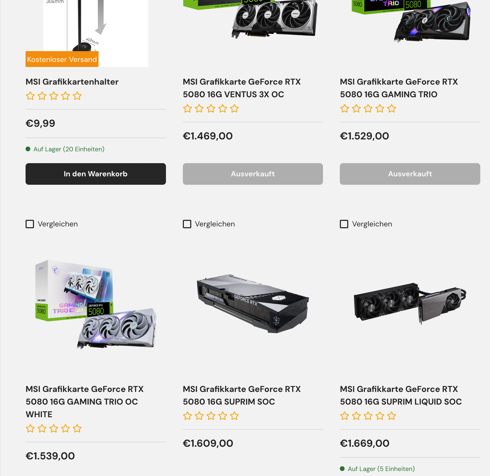 Was wir davon haben ist jetzt eine UVP von USD 999 bzw. EUR 1.169 für eine 5080 Founders Edition. Und für Custom Boards sind wir dann eher bei EUR 1.250.