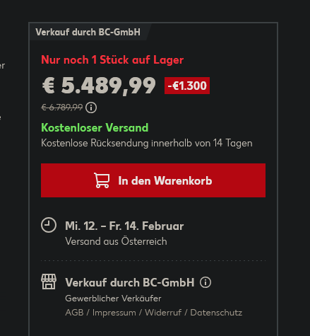 Man zahlt doch mittlerweile gar keine Provision mehr.... Einstellen/Verkaufen, alles ohne Gebühren.wechseler schrieb:Ich könnte jetzt eine "GTX 5090" für 9.999 € einstellen und eine Sekunde später an mich selbst verkaufen. Dann hätte ich eBay eine fette Provision geschenkt
