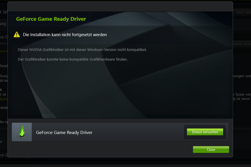 Nvidia Grafikkartentreiber nich mit Windows-Version kompatibel