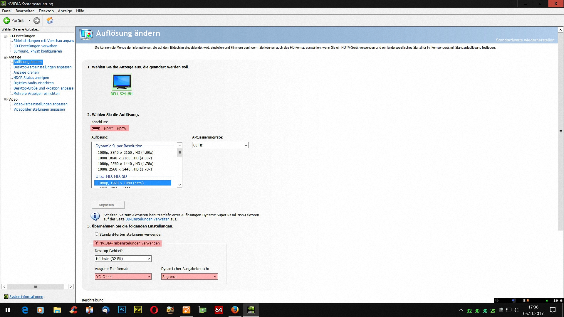 Seit ich mir einen 2. Bildschirm angeschafft habe, habe ich leider Probleme mit dem ausgewaschenen Bild über alle Eingänge, außer DVI (wo ich meinen Haupt Bildschirm angeschlossen habe). Ich besitze als Grafikkarte die Gainward GeForce GTX 1070. Ich habe schon sowohl an den Farbeinstellungen des Monitors, als auch des Treibers herumgespielt, allerdings das Problem nicht lösen können. Das Problem liegt nicht am Monitor. Ich habe ihn bereits an anderen PC's ausprobiert und hatte keine Probleme. Ich würde gerne ausprobieren, ob es am Dynamischen Bereich liegt, allerdings ist diese Einstellung in meiner Nvidia Systemsteuerung nicht vorhanden. Das Tool "NV_RGBFullRangeToggle" konnte das Problem nicht lösen.