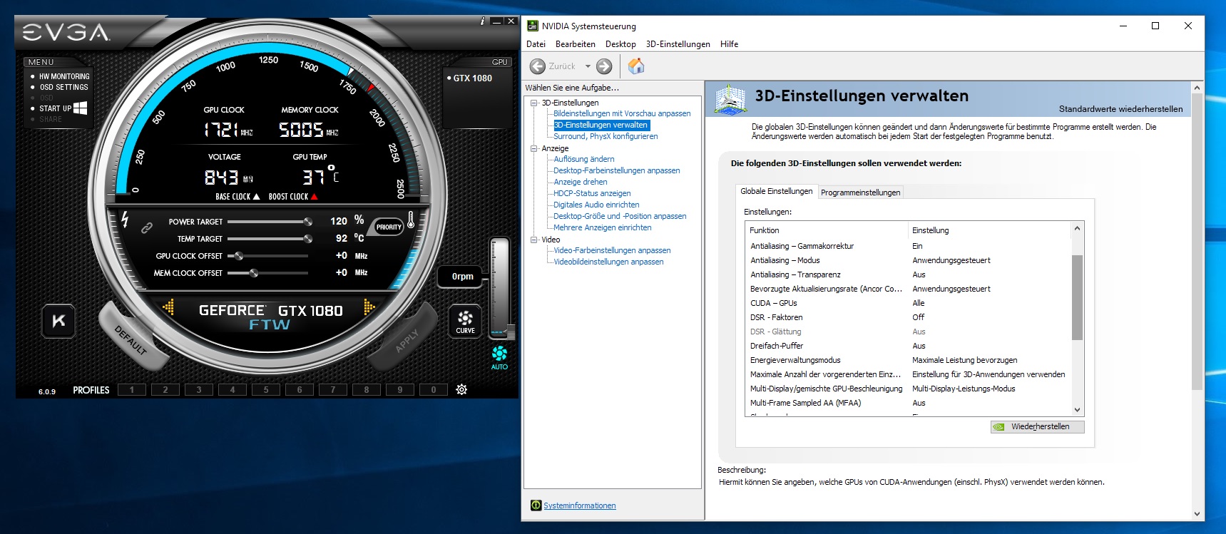 Ich habe eine Nvidia GTX 1070 Strix 8G OC von Asus in meinem PC, und es läuft auch alles super und die Temperaturen sind auch super. Nur sehe ich in jedem Grafikkarten Manager, das der GPU Clock und Memory Clock immer auf voller leistung ist. Erst nach deinstallieren der Grafikkarte im Gerätemanager und erneutem Installieren, stellt sich der Clock automatisch ein, sprich er taktet auf 200-600 mhz wenn nichts zu tun ist und auf 1600+ wenn ich was zocken will. Nach einem Neustart jedoch ist der takt wieder immer auch 1600+. Ich habe den rechner auch schon einmal neu aufgesetzt.