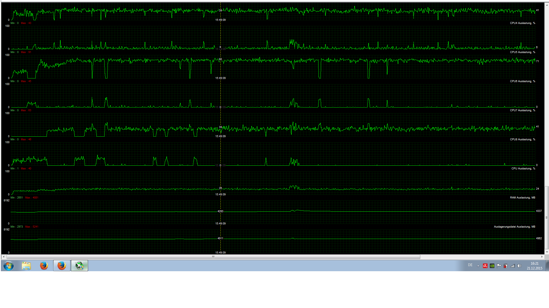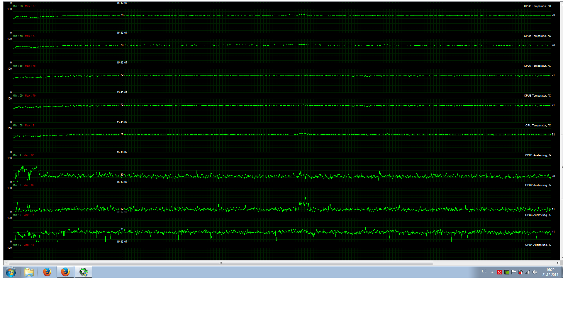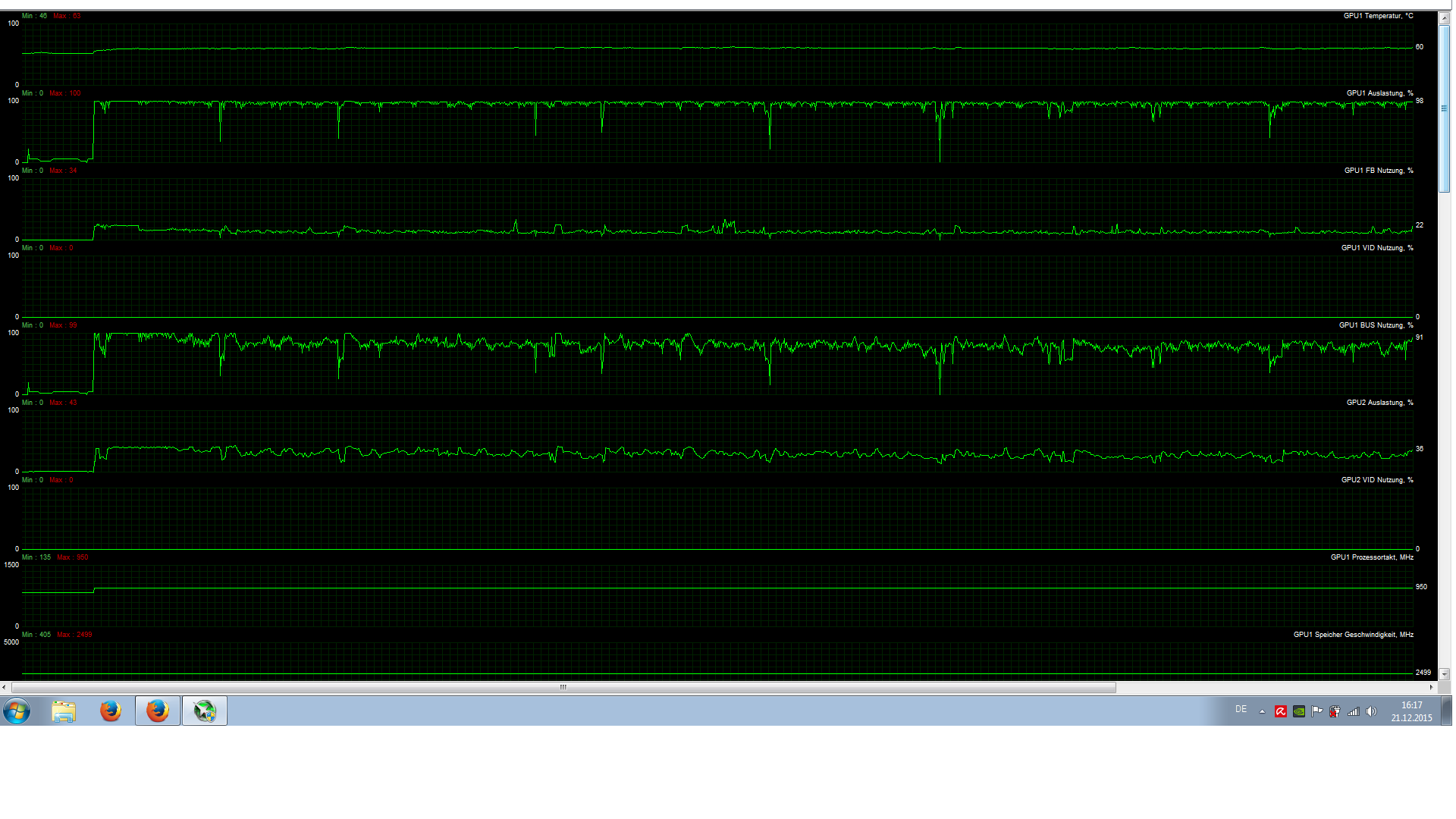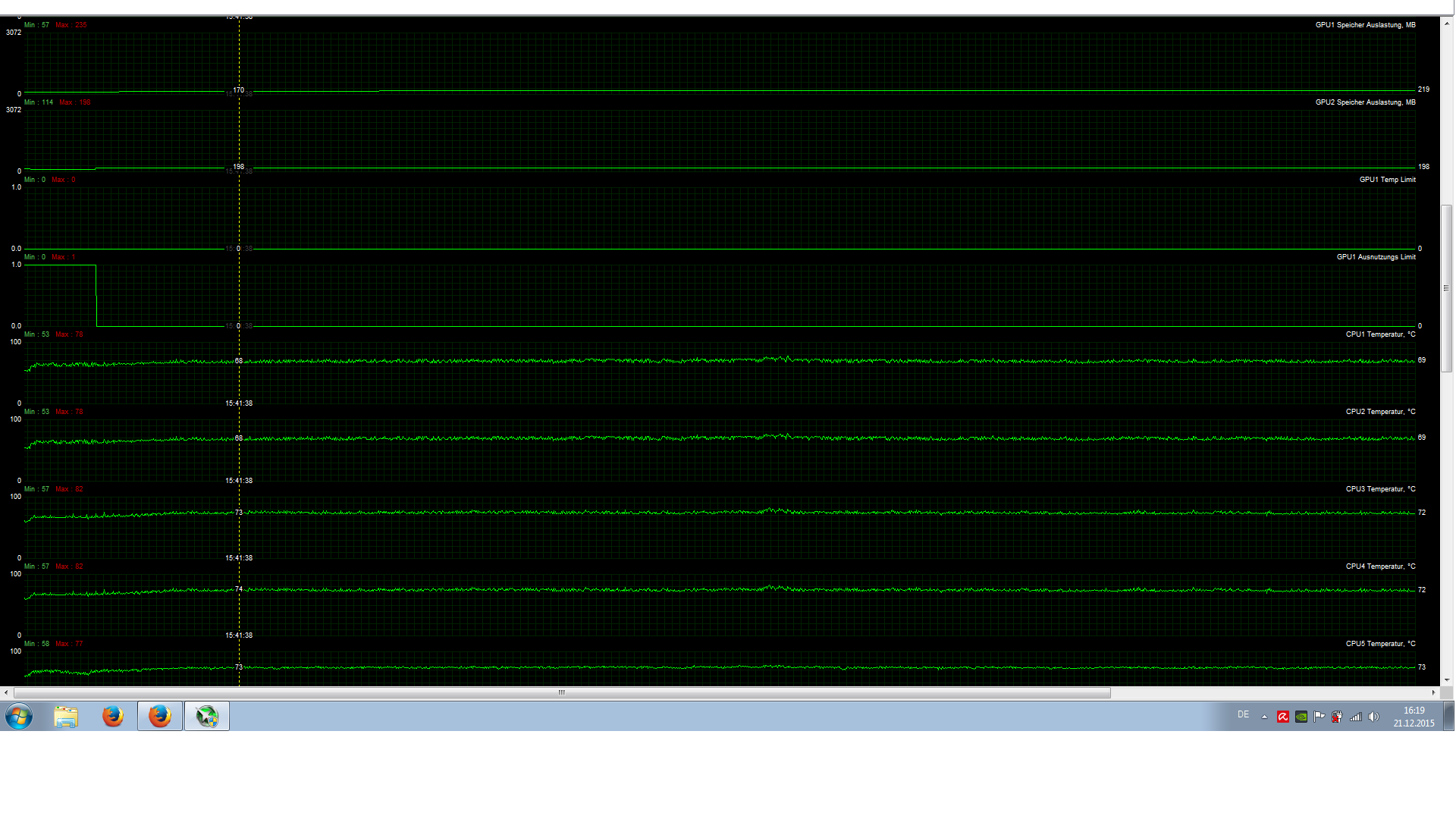 Temperaturen sehen gut aus... was auffällt ist das die GPU-Auslastung kurz runterfällt und dann wieder paaar Minuten gut läuft... Das könnten diese Framesdrops sein ...