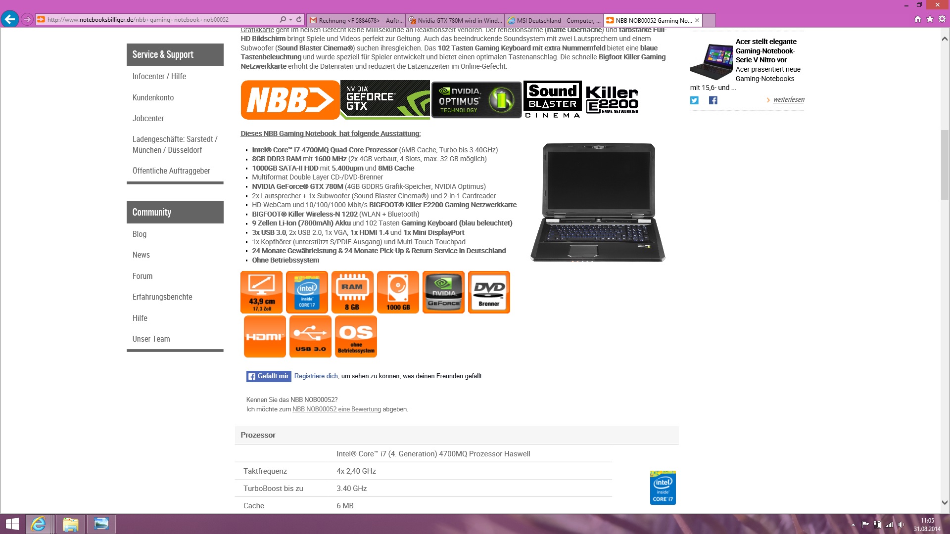 Wäre natürlich der Hammer, wenn man Dir wissentlich ein Gerät verkauft, welches mit ner GTX780M angepriesen wird und dann ist gar keine drin.