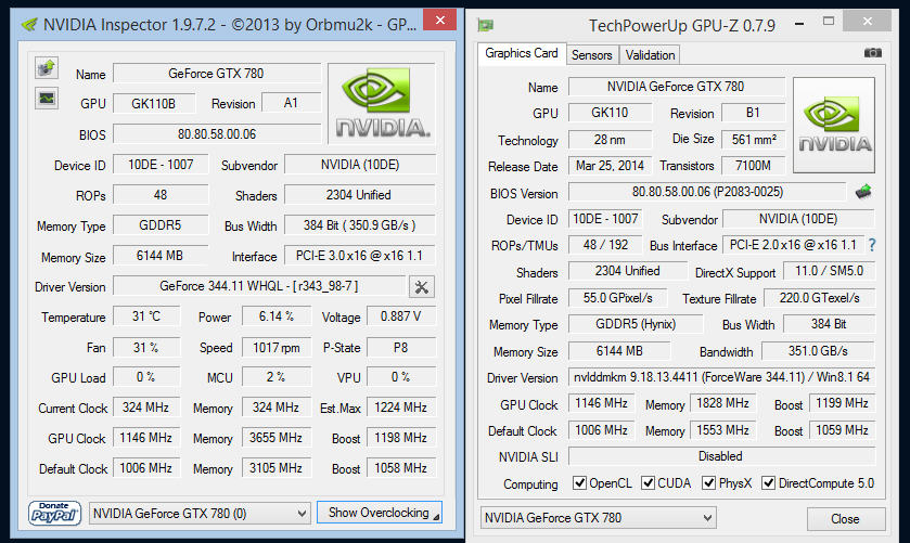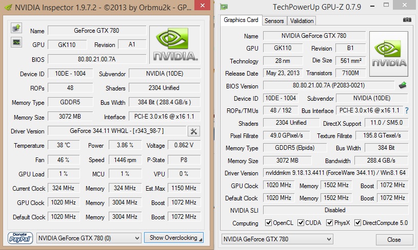 Ich habe meine GTX 780 auf 1200MHz stabil getaktet Leider Taktet sich die Karte per Boost wie ich eben erfahren habe hoch bis auf 1320MHz.