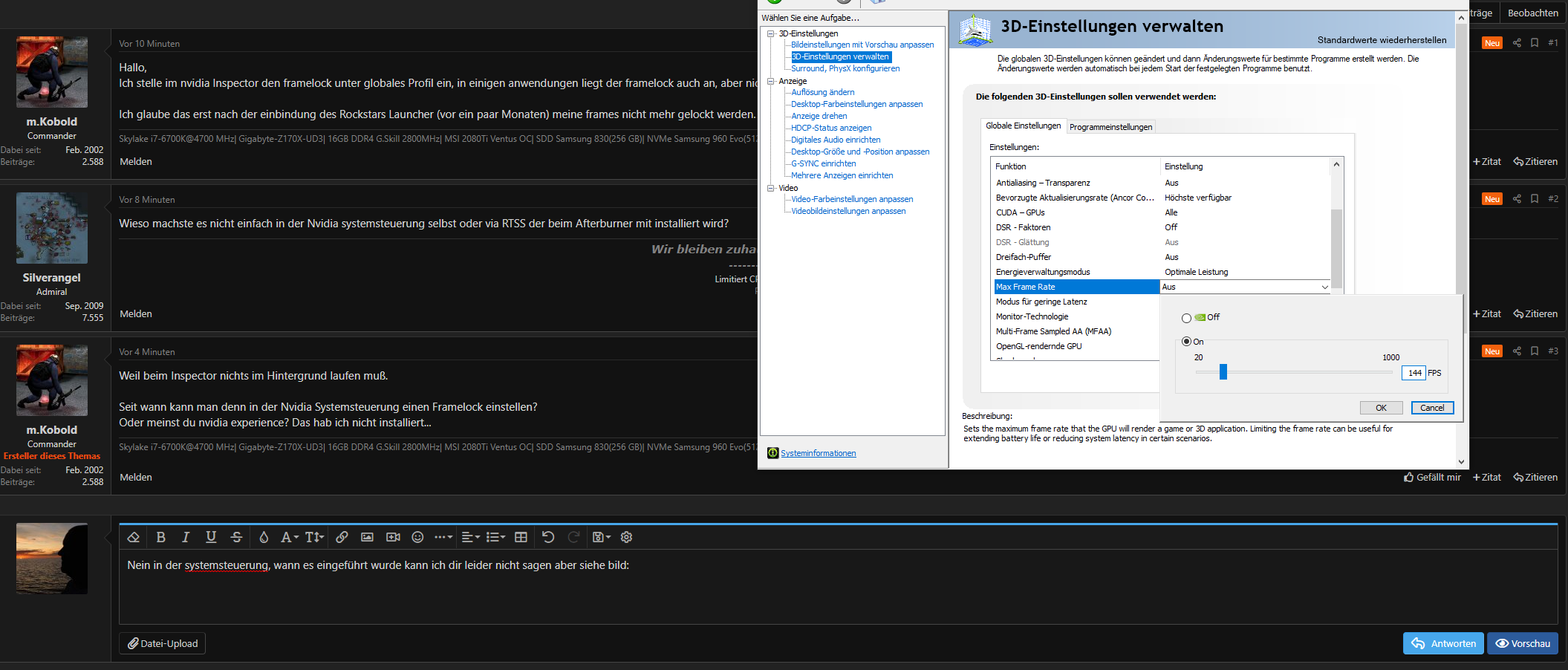 Ich stelle im nvidia Inspector den framelock unter globales Profil ein, in einigen anwendungen liegt der framelock auch an, aber nicht bei GTA V. Weiß jemand wie ich die frames dort begrenzt bekomme?
