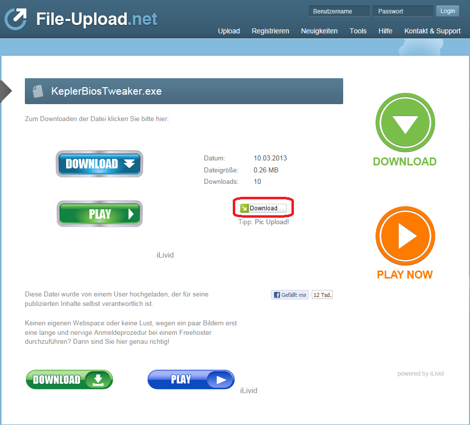 Ich nutze diesen Hoster, weil man keine Wartezeiten hat und/oder ein Captcha eintippen muss.