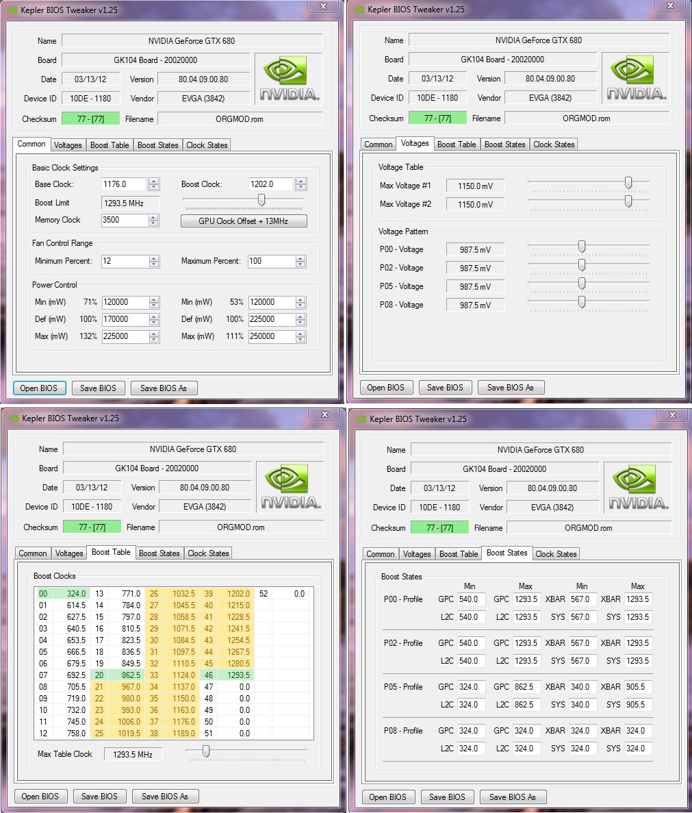 Aber direkt nachverfolgen kann ich das hier jetzt nicht mehr - bei GK110 sind es mit Over Voltage + 37,5 mV ab Werk - theoretisch mittels BIOS sind ja + 50 mV (1,2125V) drin (was Orbmu2k ja schon einmal bei einem Mod-BIOS geflasht hatte