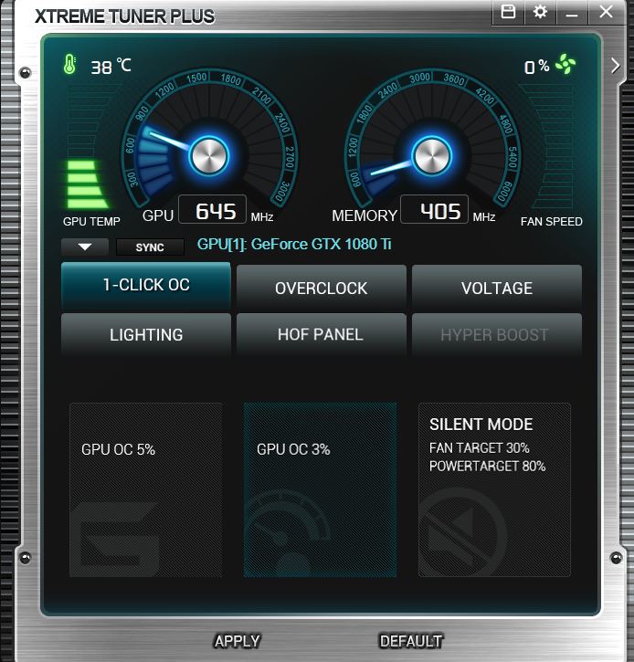 1. 1-Click OC: Möglichkeit GPU 3% oder 5% zu Übertakten, ebenso in den "Silent Mode" (Fan Target 30%, Powertarget 80%) zu versetzen.