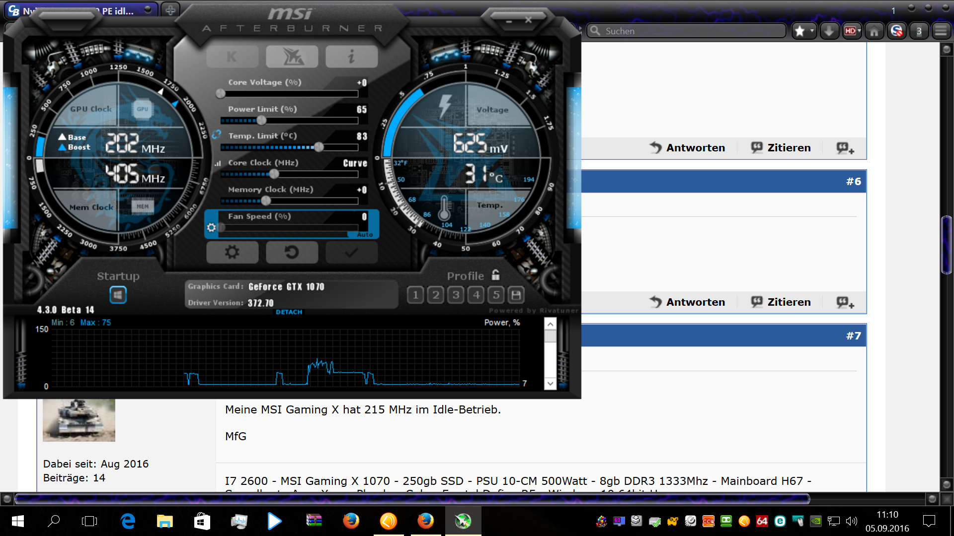 Nvidia PALIT 1070 PE idle GPU clock bei 316mhz ?