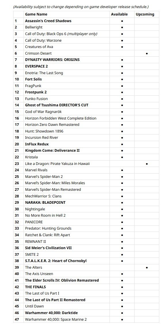 Bei Doom bei Release nicht dabei, Bei F1 25 nicht spielbar wegen einen Bug etc. So gut auch Radeon 9000 geworden ist, aber Softwareseitig und bei Verbreitung der Features versagt AMD leider auf ganzer Linie, was wirklich sehr schade ist.