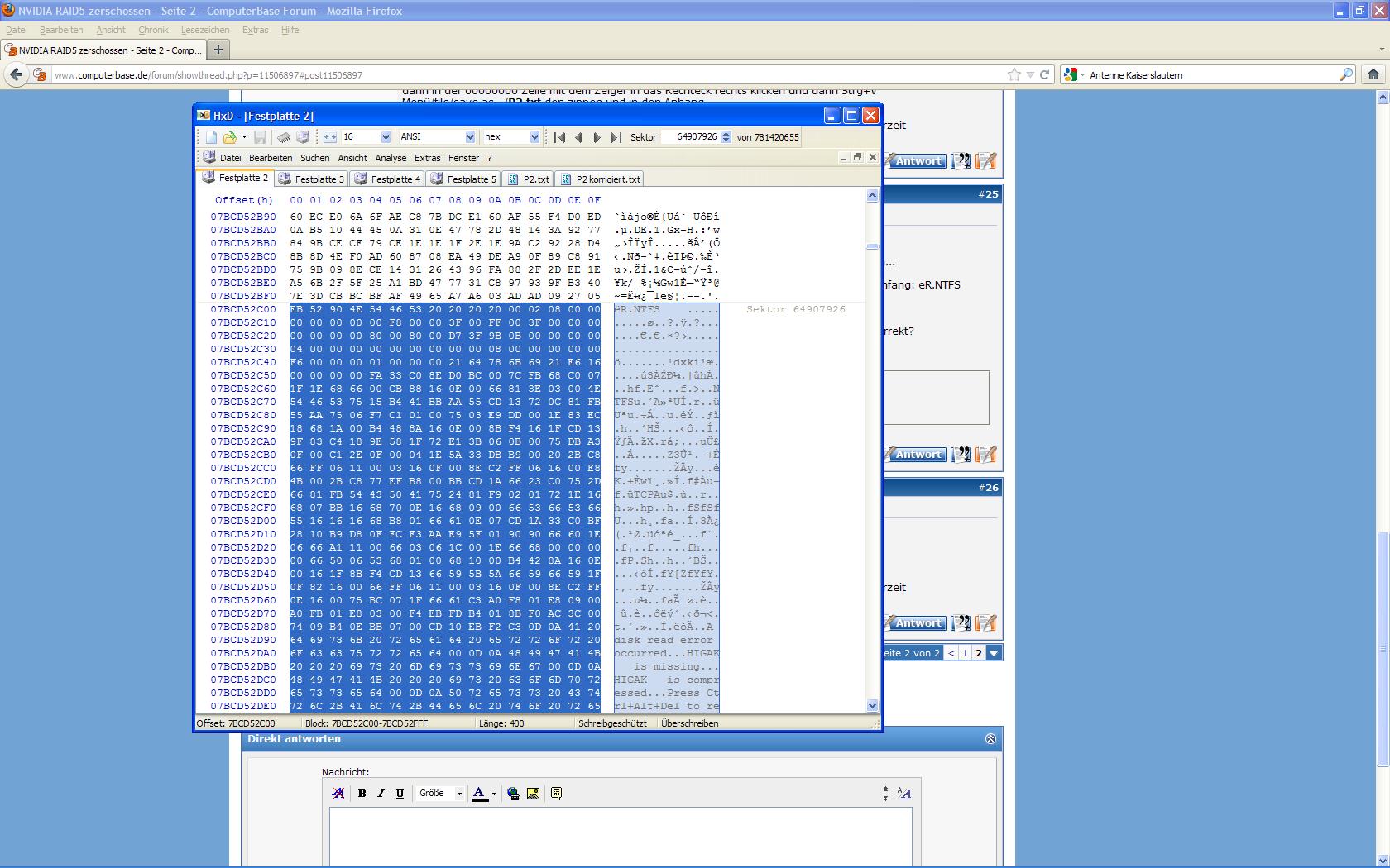 Auf Harddisk 2 steht bei diesem Bereich hex am Anfang: eR.NTFS
