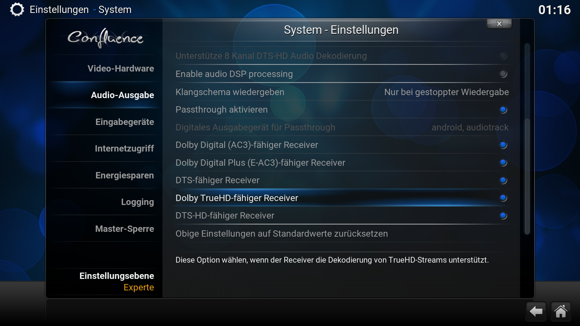 Seit Ende Dezember gibt es im offiziellen Kodi Forum eine Testversion (neben der offiziell Bekannten Kodi 16 Beta X!) die speziell das Testen der HD Tonformate auf allen ARM (Android) und x86 (Intel/AMD) basierten Settopboxen gedacht ist. Und NUR DIESE enthält auch die neuen Ton Modi für den HDMI Passtrough!