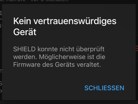 Wenn ich von meinem Smartphone (iPhone 13) z.B. ein Youtube Video an die Shield "schicken" will kommt folgende Fehlermeldung