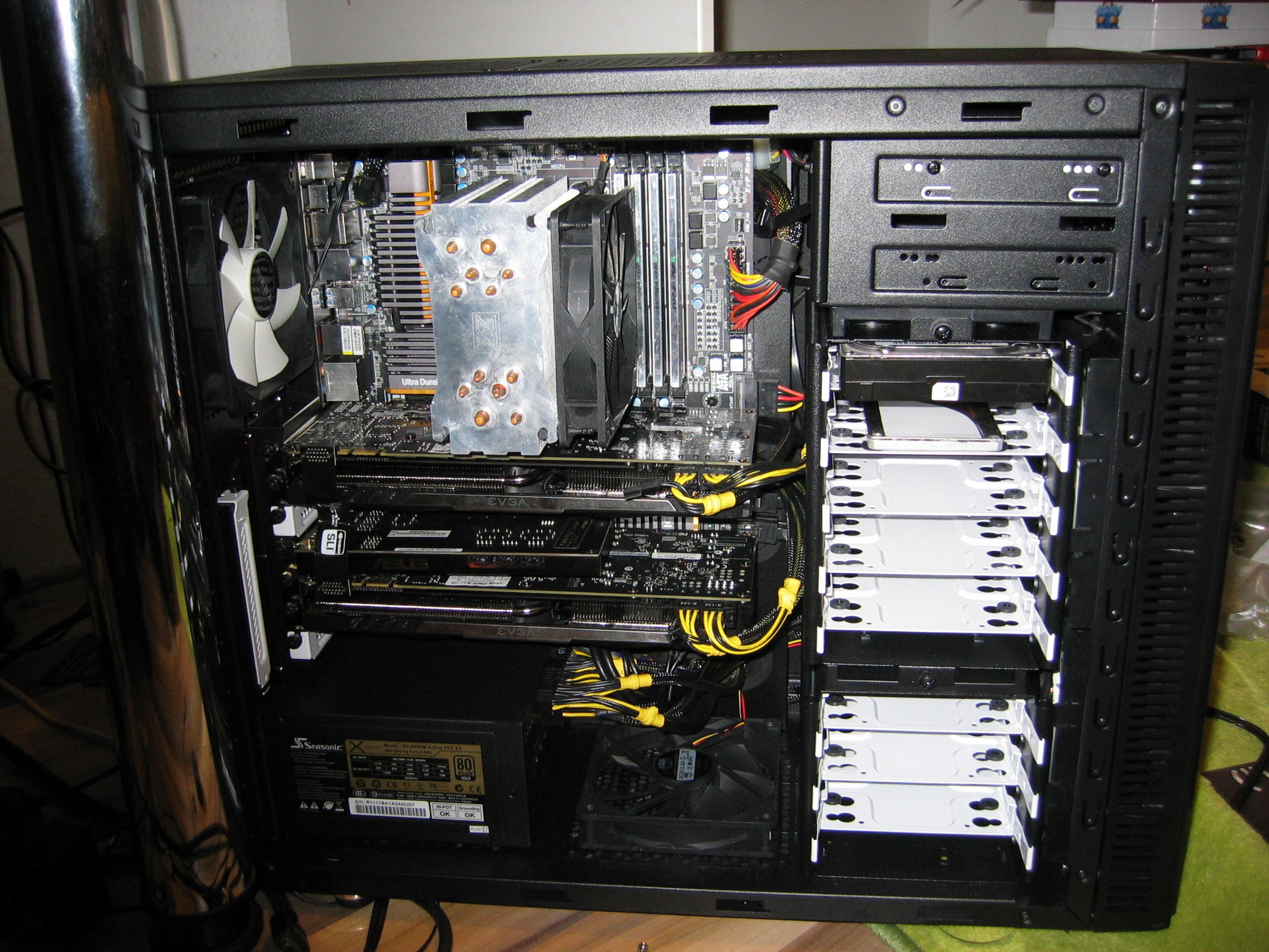 Das Gehäuse ist übrigens ein Fractal Design Define R4. Ich habe mir gedacht, dass ich einen Lüfter an die Seitenwand montieren könnte, allerdings bin ich mir nicht sicher, ob er blasen oder saugen sollte.