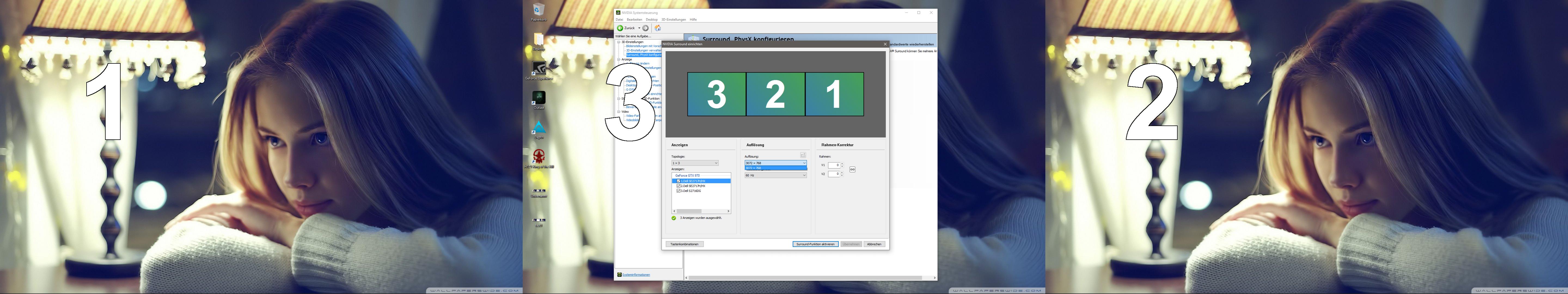ja Moment mal, aber 1 und 3 sind doch nur FullHD Schirme oder nicht? Nur 2 ist 1440p. Haste die anderen per DSR auf 1440p gebracht oder wie? Sonst kannste ja gar nicht auf 7680x dingens kommen. Das gibt dann natürlich Probleme mit NVIDIA Surround