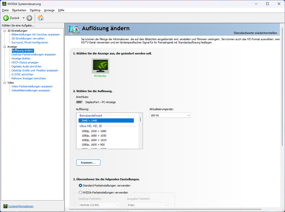 Also entweder bin ich jetzt farbenblind oder Du, ich sehe da kein Gelb, sondern Grün?Tarik9999 schrieb:Hey wenn ich auf NVIDIA Systemsteuerung Auflösung ändern > Anpassen > Benutzerspezifische Auflösung erstellen gehe und dann bei Aktualisierungsrate (Hz) zb 61 Hz mache (Mein Monitor hat 60 Hz) wird mein Monitor Gelb (Foto). Kann man was da gegen machen?