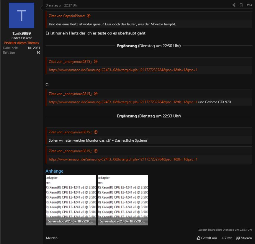 Nein, hatte er nicht. Wie in dem angehängten Screenshot ersichtlich. - Der oberste Post war der, auf den ich reagiert hatte, die drei anderen waren seine vorhergehenden Posts zum Thema. In diesen dreien steht nichts von der Grafikkarte. Einfach mal dem kompletten Chatverlauf folgen und dann erst reagieren.