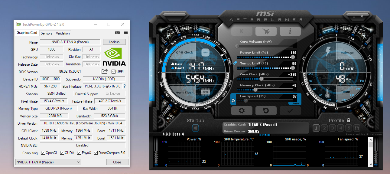 220MHz+ sind eingestellt, +180 mehr liegen laut GPU-Z an. Am Speicher habe ich nicht übertaktet, laut GPU-Z schon.