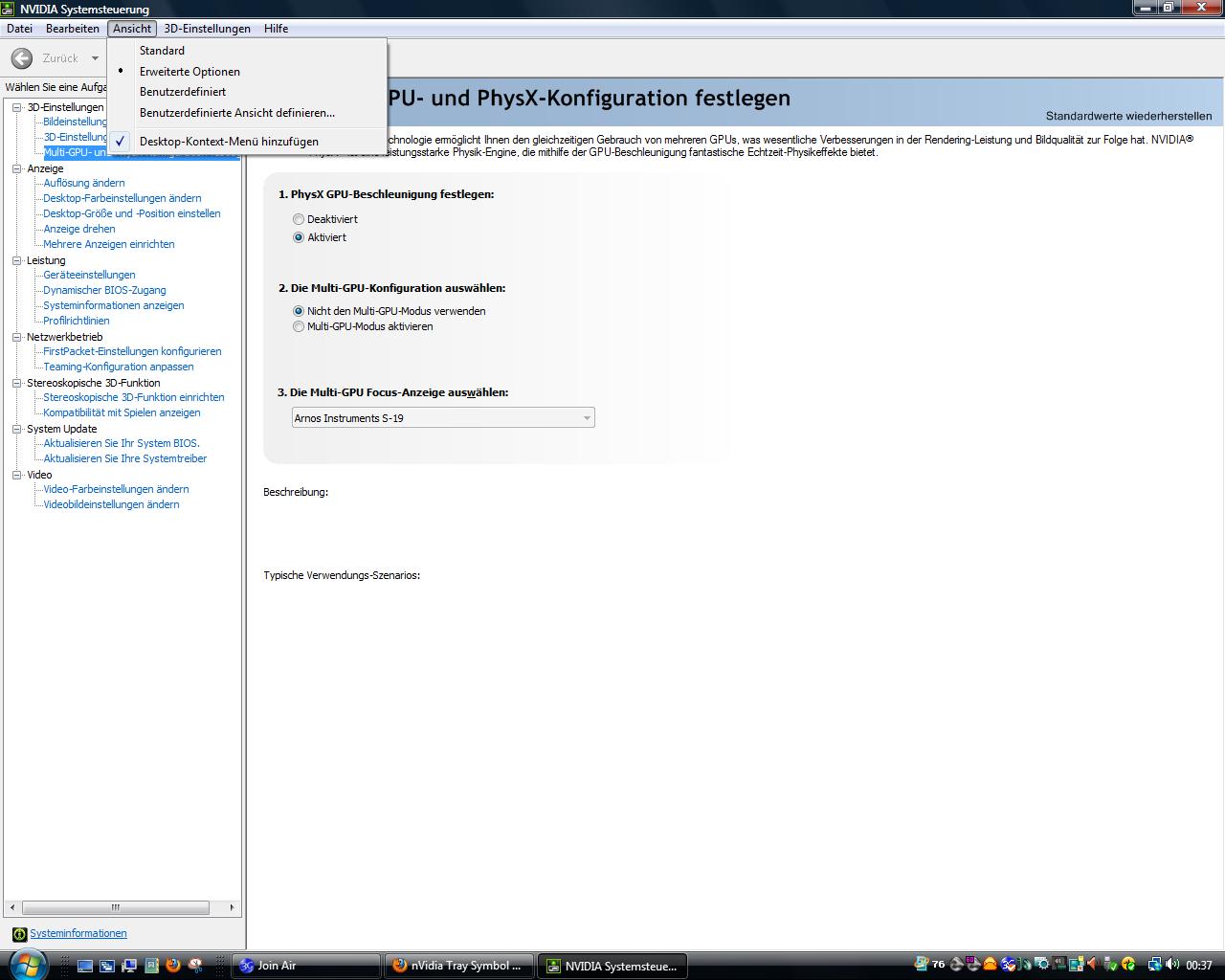 Also : Rechtsklick auf den Desktop - NVIDIA Systemsteuerung - Ansicht - bei "Infobereich-Symbol" einen Haken setzten damit die NVIDIA-Einstellungen wieder in der Taskleiste ist,