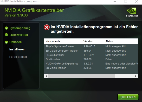 Doch bei jedem Versuch kommt an einer bestimmten Stelle (Grafiktreiber installieren) eine Fehlermeldung.