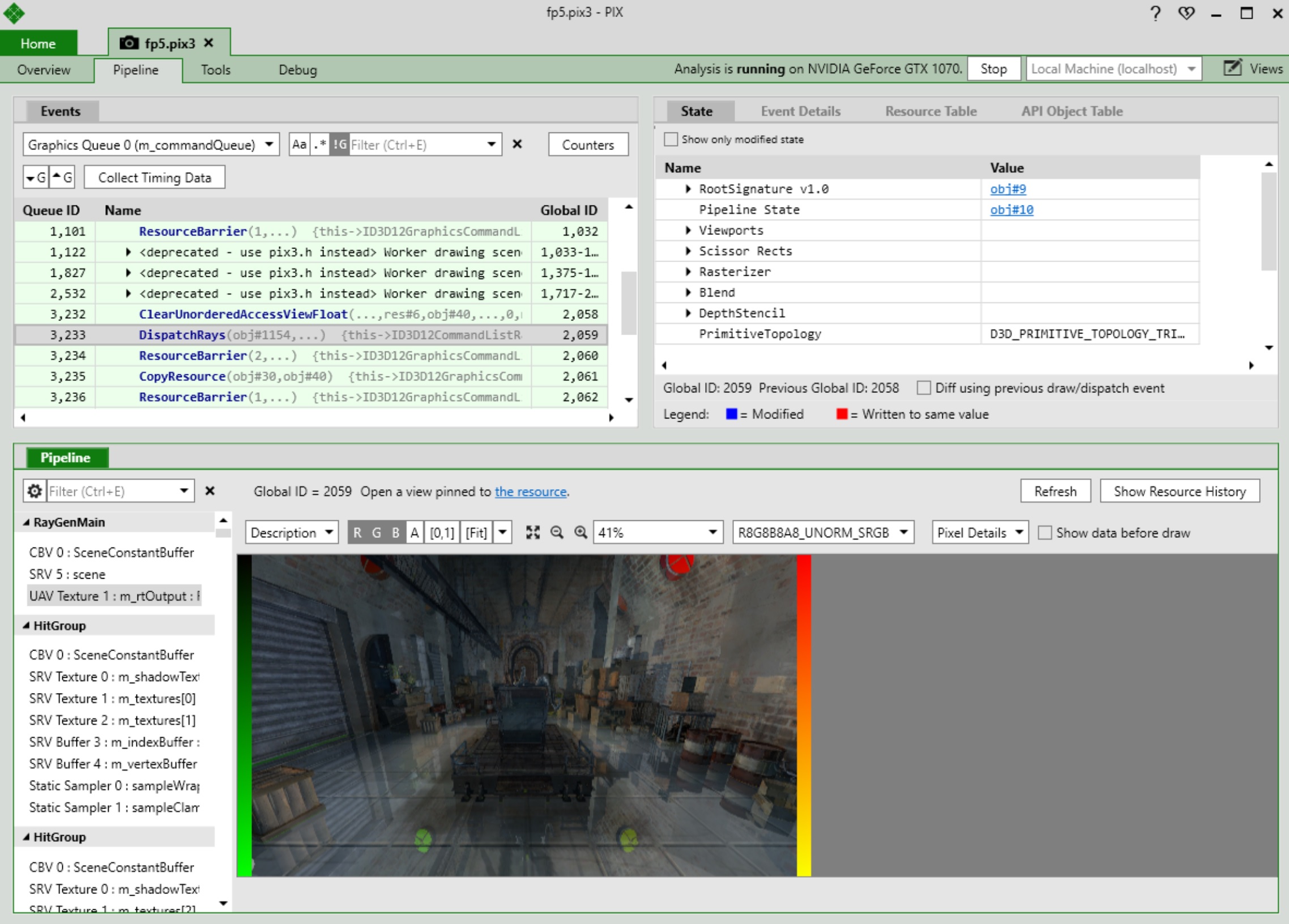 Mal ein Bild mit PIX (Microsoft) und einer GTX1070. Irgendwo wird es schon laufen, wer volle Beschleunigung will muss eben zur 2000 Serie greifen, Optimierungen der Entwickler natürlich inbegriffen, RT wird dann über Compute Shader ausgeführt.