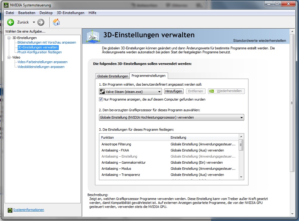 Funktionierte nur mit älteren NVIDIA-Treibern (296.31) und führte zu erheblichen Grafikfehlern (Schatten ganz komisch verschoben)...