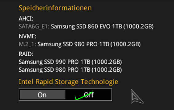 Ich habe das Problem, dass 2 meiner 3 nvme im Bios unter Raid angezeigt werden und sie dadurch in Windows nicht erkannt werden.