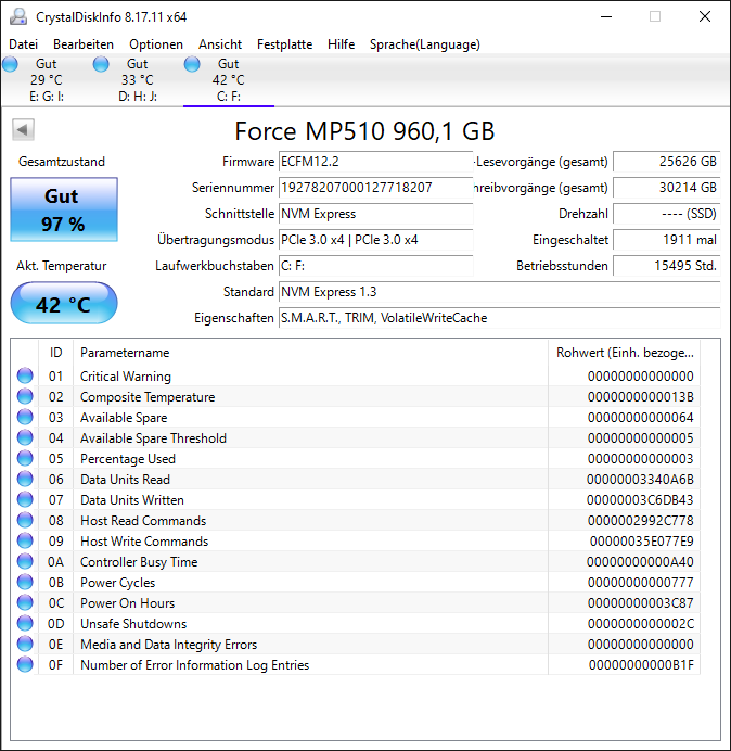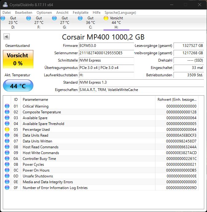 Zum Vergleich hier mal meine SSD, die ganz normal genutzt wird: