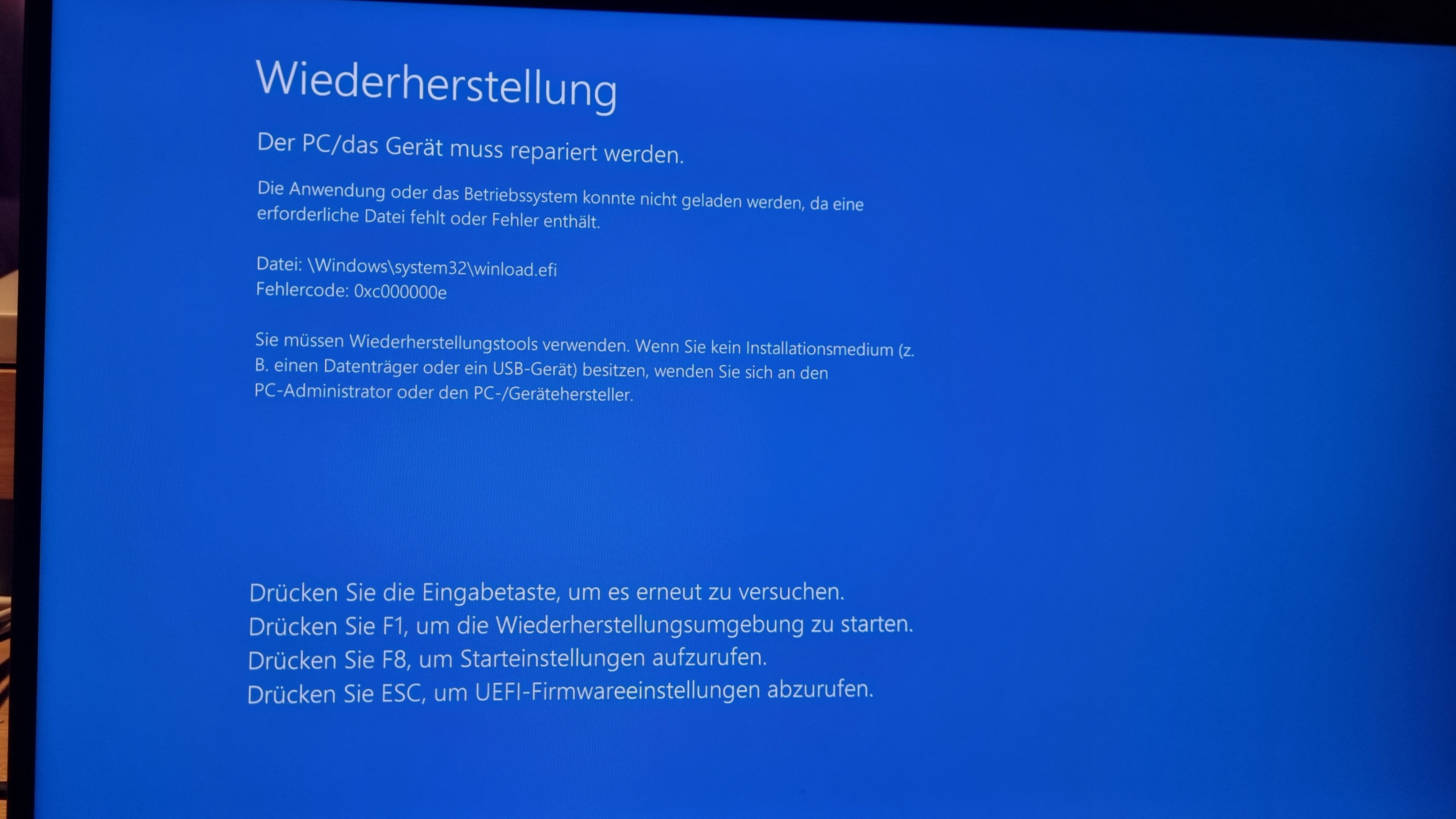 Du erstellst den Stick und danach startest du dein Laptop neu. Du musst nicht unbedingt ins Bios/UEFI. Da gibt es bei jedem Hersteller eine Taste (F(/F9/F12 ?? keine Ahnung was bei Acer der Fall ist) um die Bootauswahl aufzurufen. Dann musst du den Stick auswählen und zwar mit vorangestelltem UEFI. So ähnlichKevinJohn91 schrieb:Ich erstelle das wiederherstellungsmedium auf einen usb stick. Dann fahr ich den rechner runter, stelle im bios die bootreihenfolge auf den USB Stick