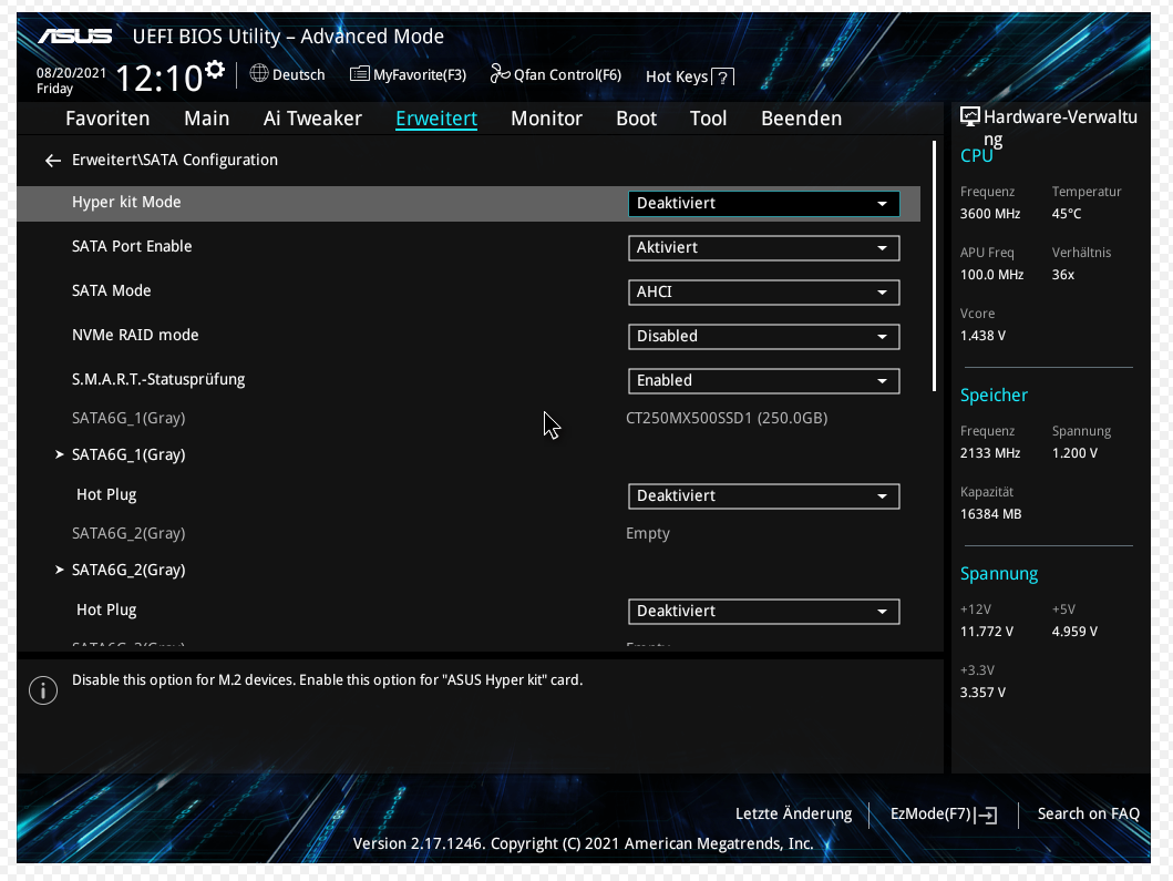 Bei meinem B350 Asus Board gibt es noch einen Hyperkit Modus. Gibt es sowas bei dir auch?