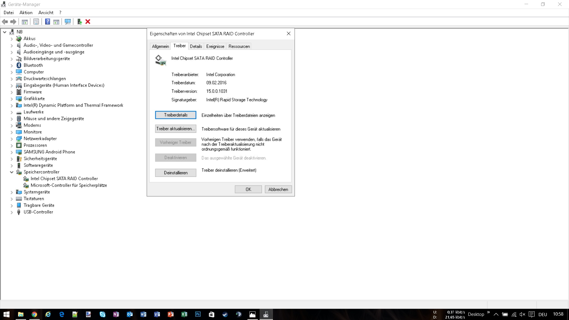 Der Intel Raid Treiber wurde während der sauberen Installation im Setup hinzugefügt.