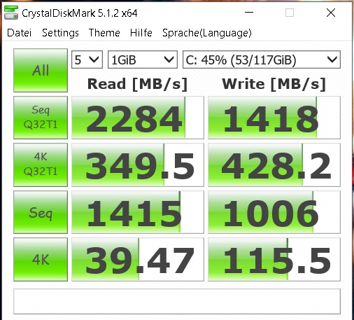 bei meinem DELL XPS 15 verwundert mich die AS SSD sequentielle Schreibrate.