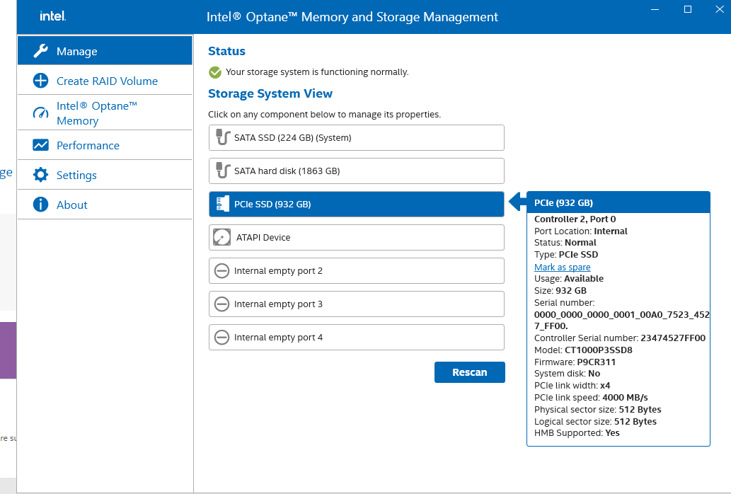 Sollte sie nicht da sein, dann mit "Intel Rapid Storage Technologie" aktiviert versuchen
