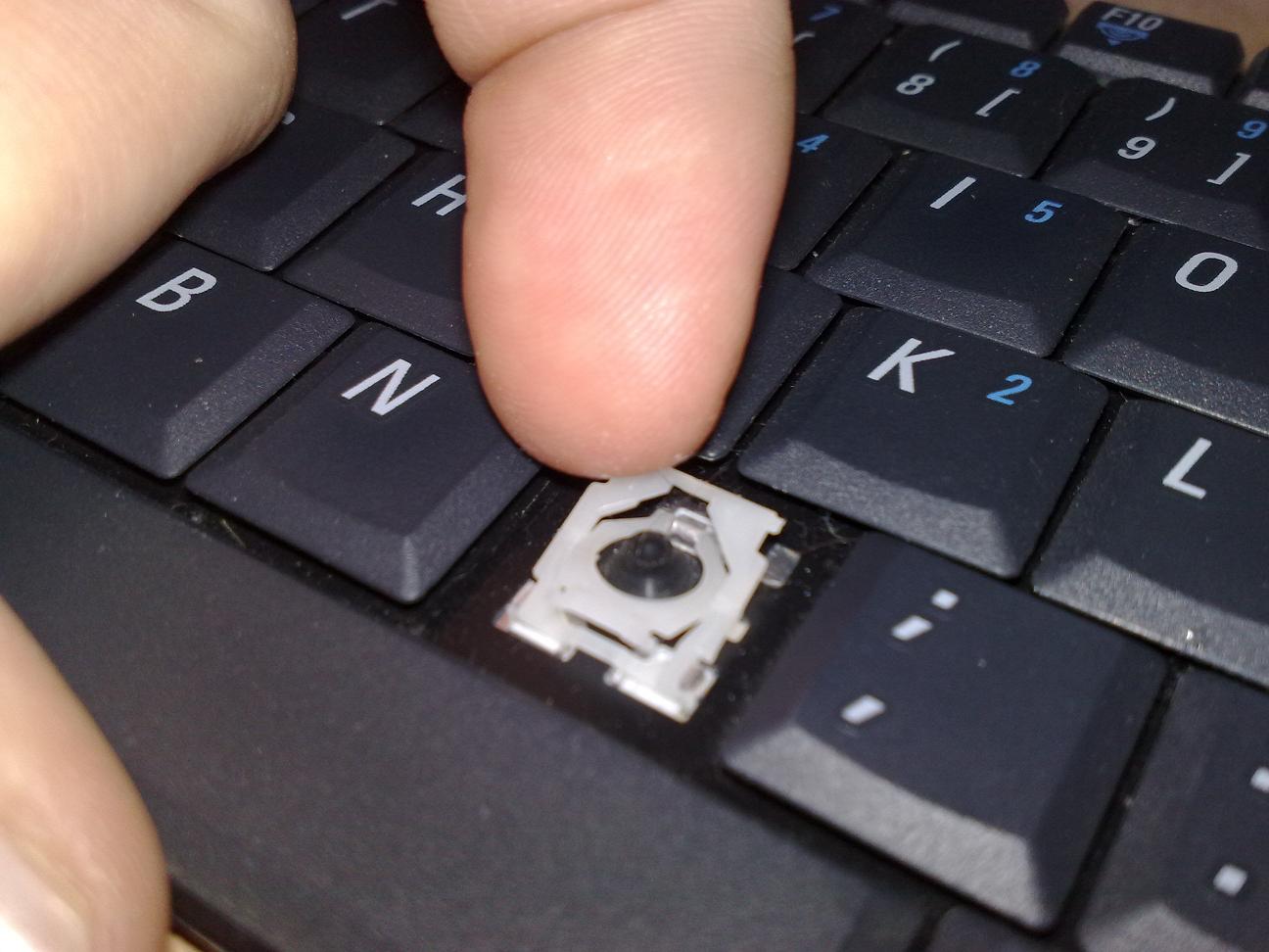 Beim Reinigen des Lüfters muss man die Tastatur des Laptops anheben. Ich habe dafür wohl eine ungünstige Stelle gewählt und mir ist einer dieser Plastik-Clips einer Taste abgebrochen...