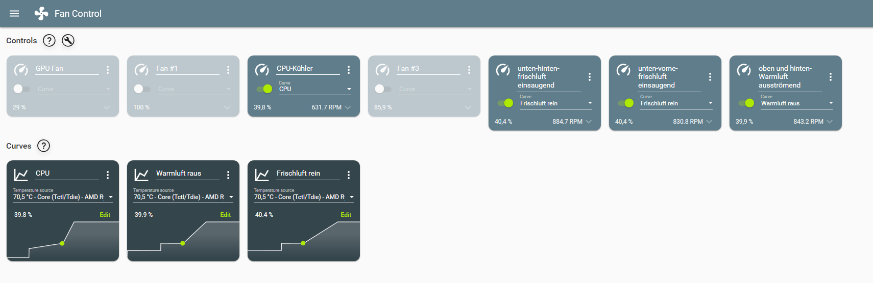 Ich habe 5 Gehäuselüfter von NZXT und steuere die über die CAM-Software, alle Lüfter sind an einen NZXT-Controller angeschlossen und der Controller über USB 2.0 am Board. Alles läuft bis gestern schon eine ganze Weile anstandslos.