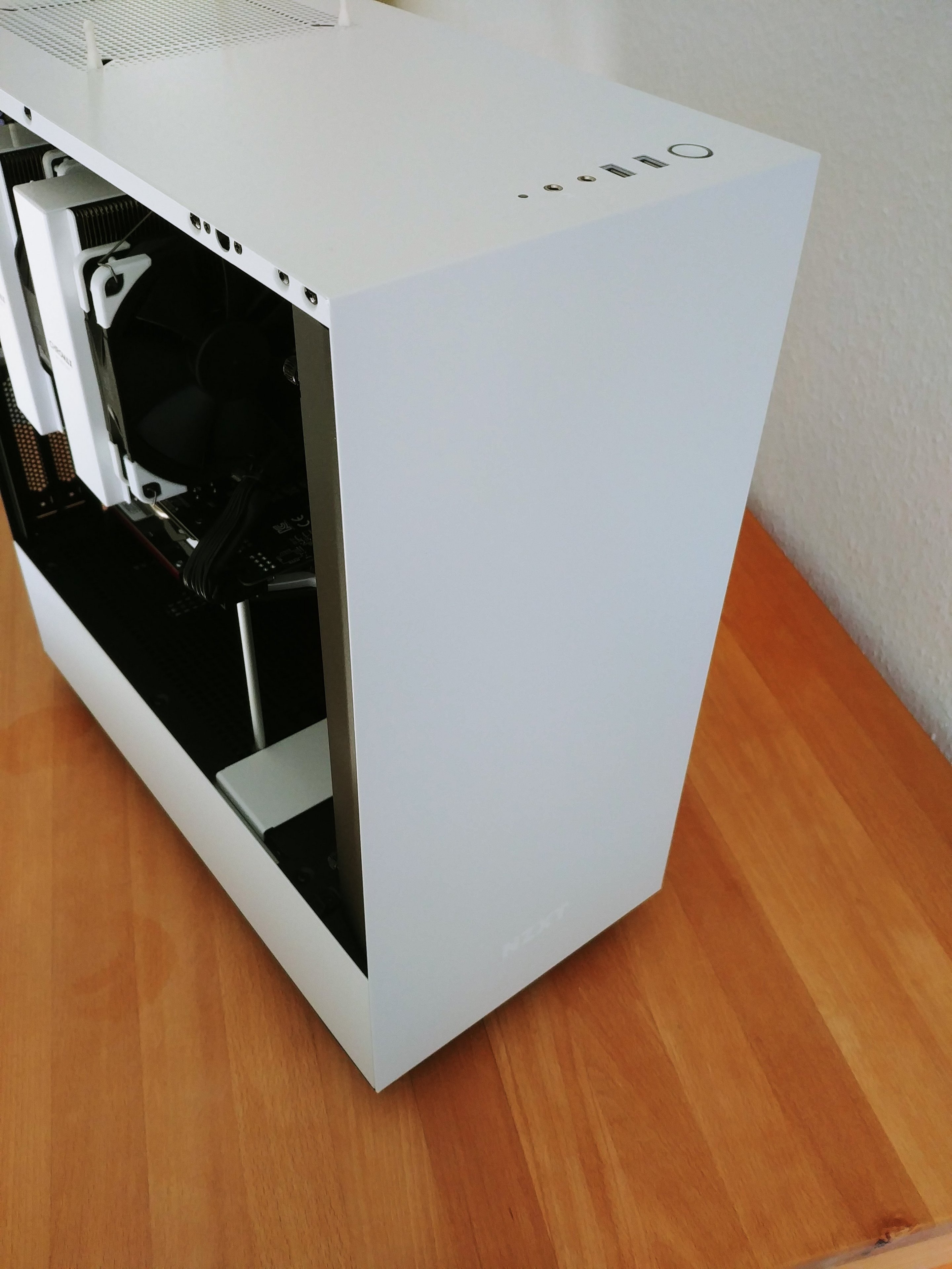 NZXT die USB Ports gehen wie ne 1 auch nach reger Benutzung. Das S340 Elite war eines der letzten Gehäuse die NZXT noch qualitativ gebaut hat. Das H500/i ist schon deutlich schwubbeliger und der weisse Lack ist recht empfindlich. Das drücken des Powerschalters wirkt irgendwie billig, es schallt durchs ganze Gehäuse, die Led des Schalters leuchtet ins Gehäuse rein und erhellt auch noch den ersten USB Port -wirkt dadurch irgendwie schnell zusammen geschoben im CAD und ab in die Produktion. Teilweise fehlt ne Passgenauigkeit z.B. die Schraube zum befestigen der Scheibe, ist schwer an die Position zu bewegen in der sie arretiert wird. Folge davon ist das Lack langsam absplittert um das Gewinde herum, Metall wird teilweise über Metall geschoben - wieder geht Lack ab. EPS Stecker sitzt bei meinem Board etwas weit oben das ich Probleme hatte den 140mm Lüfter oben zu nutzen da dort dank der Lasche am EPS Stecker knapp 1mm fehlt. Denke in einer eventuellen Elite Version würde das gefixxt.